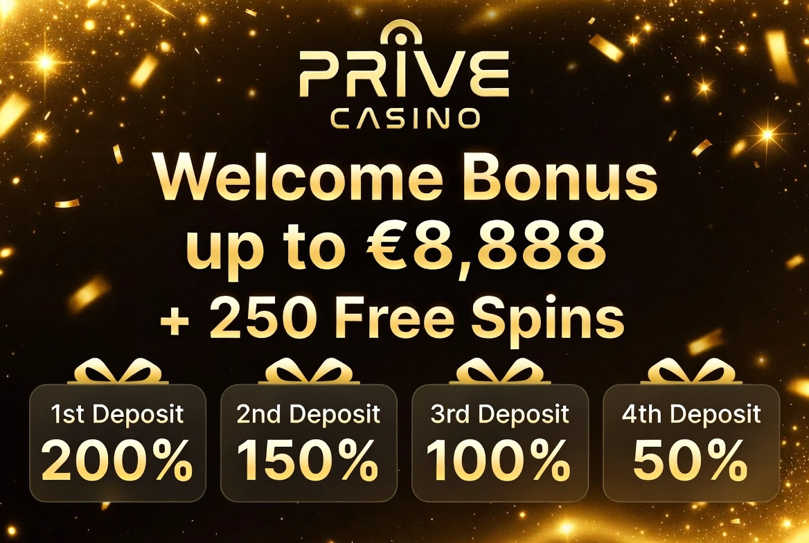 Welcome Bonus at Prive Casino – Up to €8,888 + 250 Free Spins